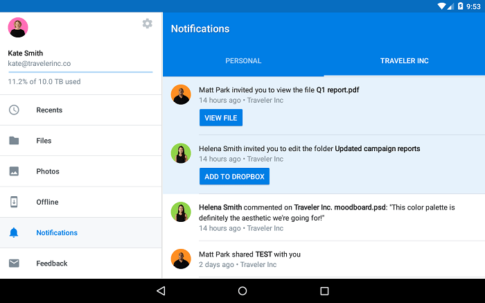 • The feature of workspaces allows you to create many spaces, if, for example, you work for various organizations or have different clients.