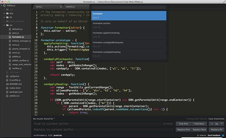This is another of the few best software development apps that you have to use in your work. It allows the team of software developers to work together. It is a desktop application (a hackable text editor) built on a HTML. JavaScript, Node.js and CSS integration that runs on Electron. Available for Windows, Linux, and OSx platforms. You and your team can do so many things with Atom, share code, work together on a code, share workspaces, get context-aware auto-completion, use code navigation features, diagnostics, and integrate it with GitHub.