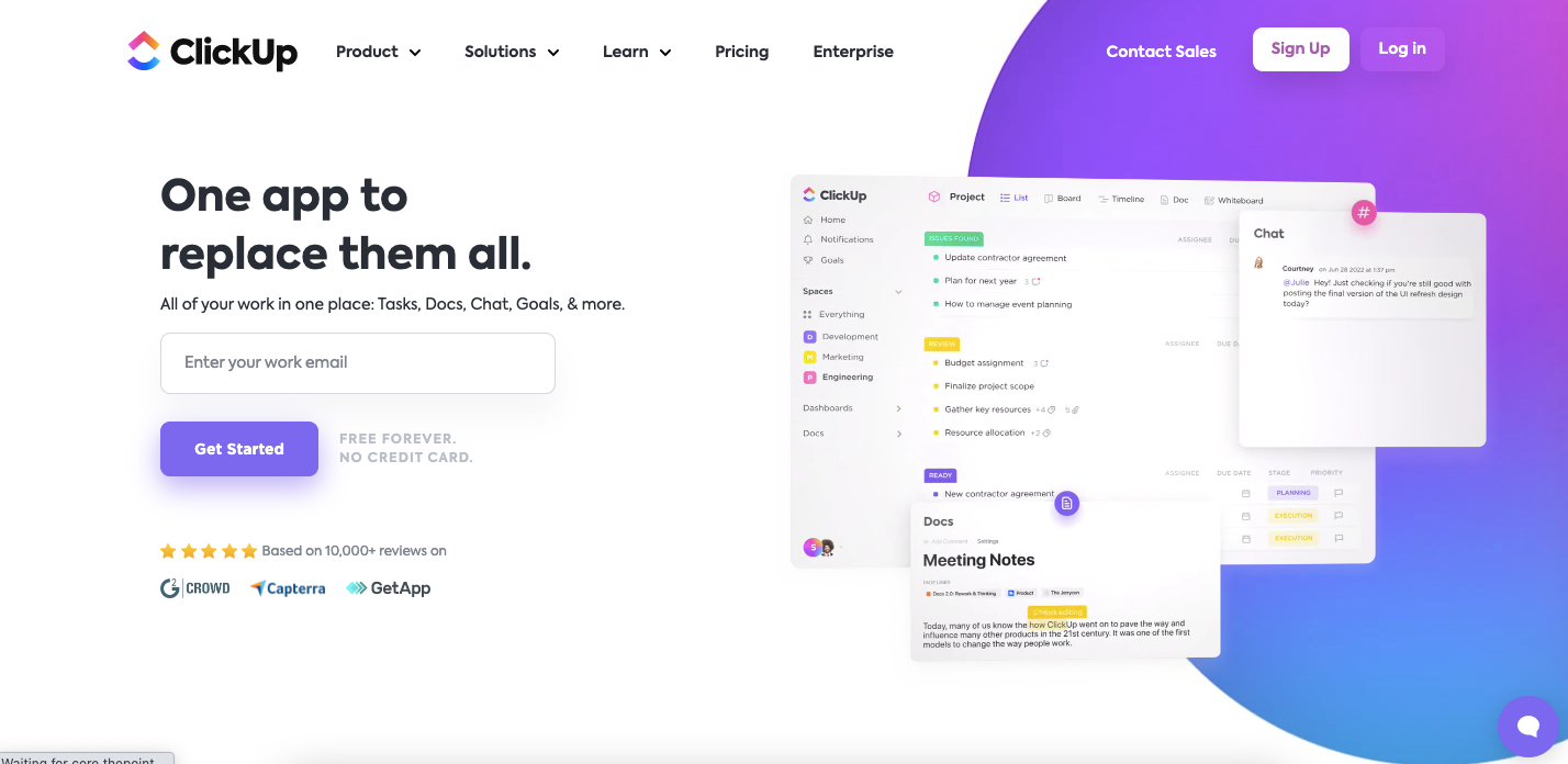 In ClickUp, you can distinguish several modules, including Process Management, Task Management, Time Management, Reporting, and Customization. But since all the features nicely interface, altogether, they create a unified hub for organizing work.