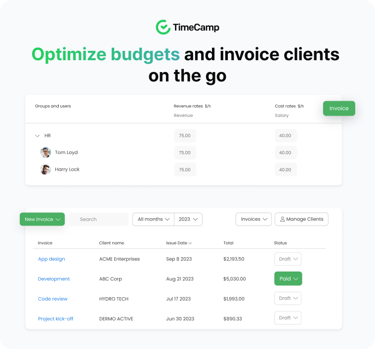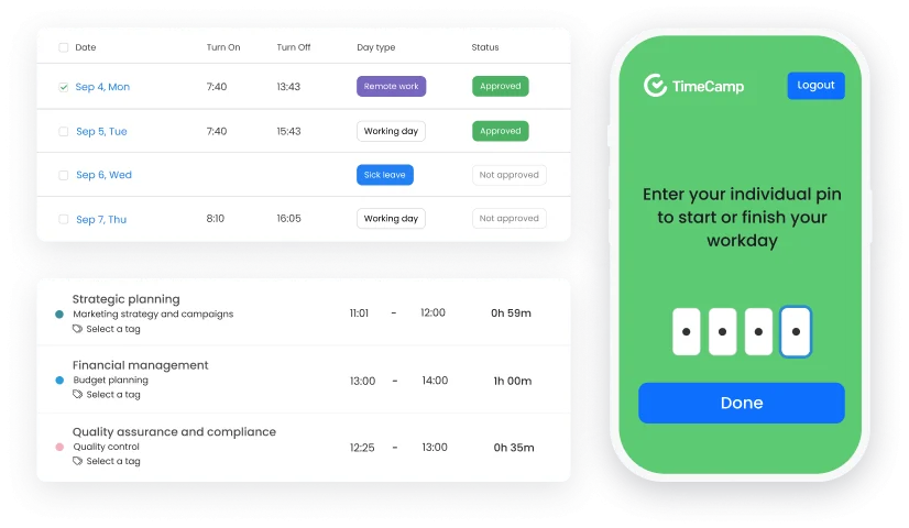 Book a short, focused call to see TimeCamp configured for your organization’s structure, approval flows, and reporting needs.