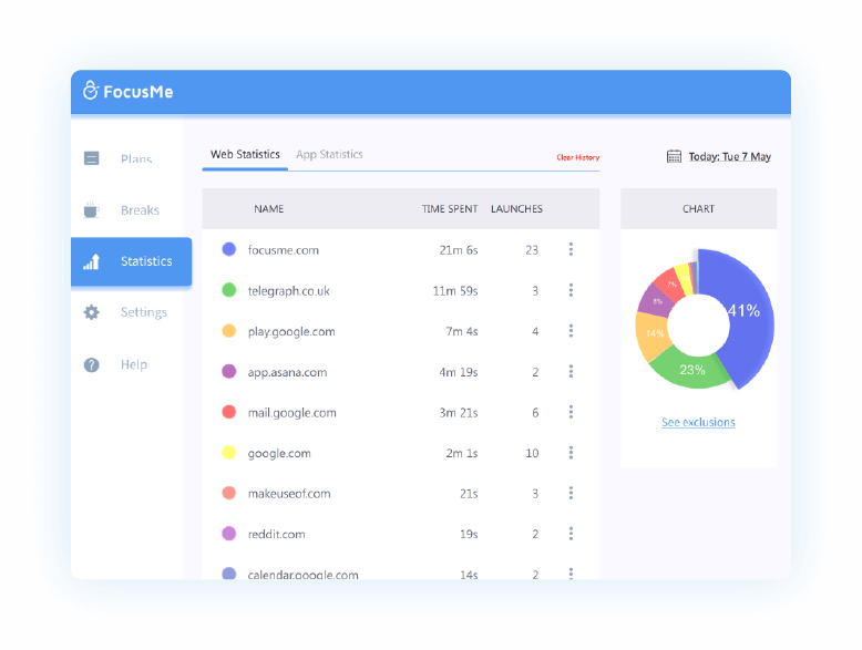 FocusMe tracks the time you spend on your activities and shows a complete record with time logs for certain activities. It’s a perfect tool for people who want to become more productive and better manage their time.