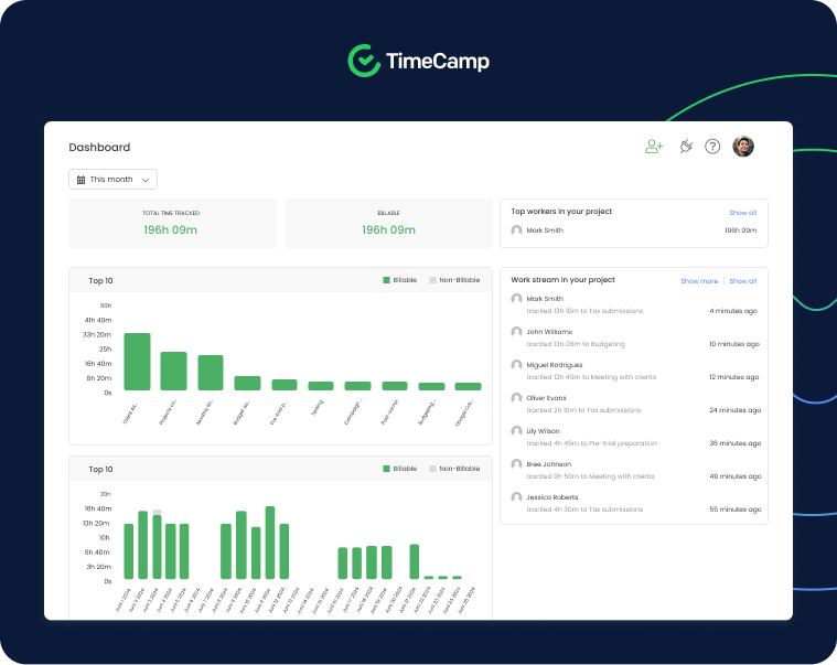 Book a short, focused call to see TimeCamp configured for your organization’s structure, approval flows, and reporting needs.