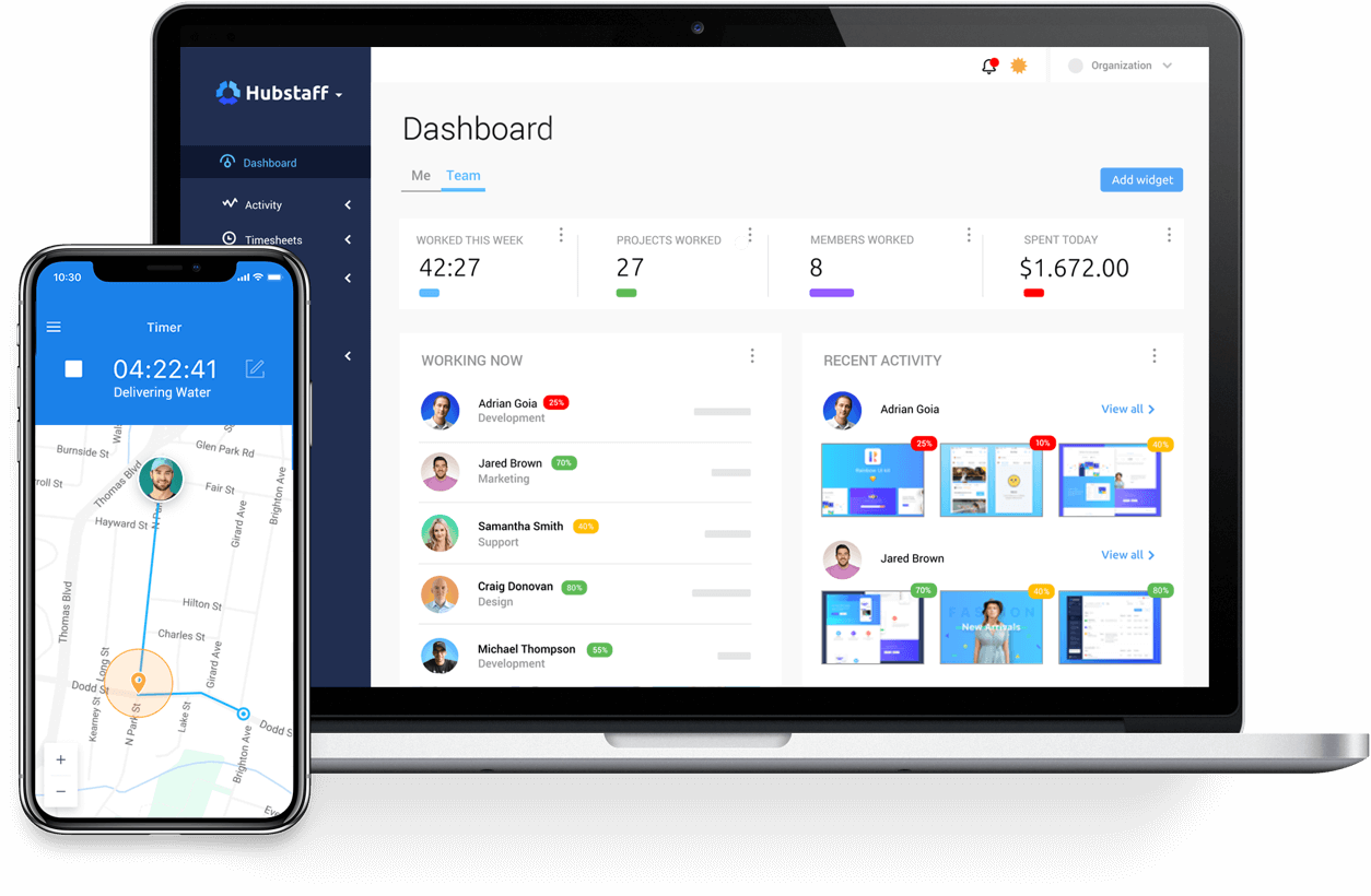 Hubstaff is a time tracking software suitable for remote teams and on-site workers. Besides classical employee monitoring, it has a GPS tracking module with a time clock app.