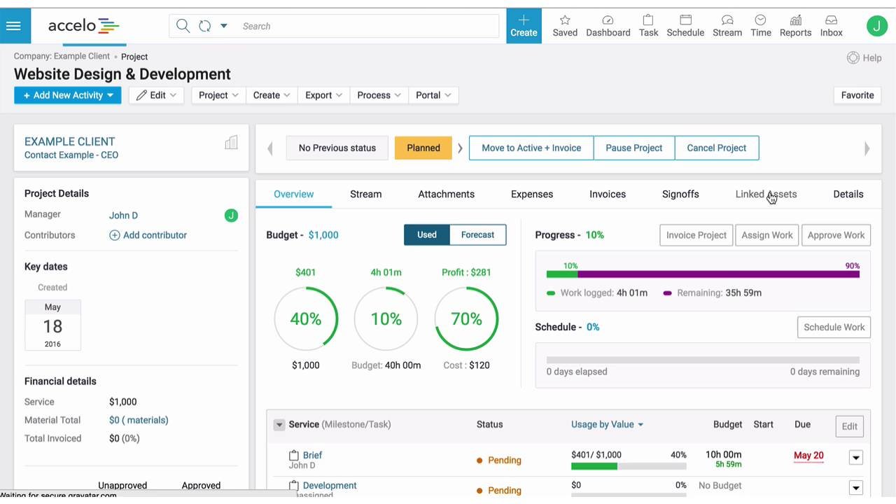 7. Accelo – real-time analysis of project progress