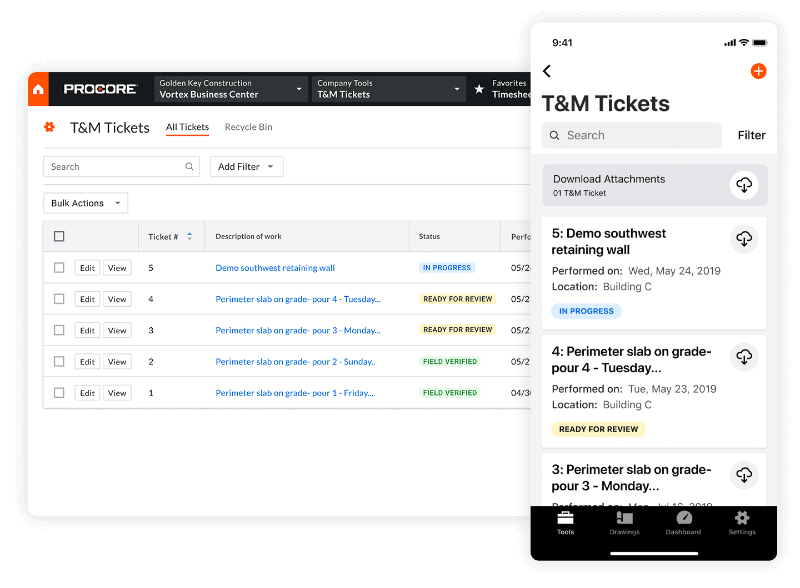 The Procore app is available on mobile phone or tablet. This mobile project management solution enables you to have the freedom to move around the job site while it tells you what’s happening and when it’s happening.