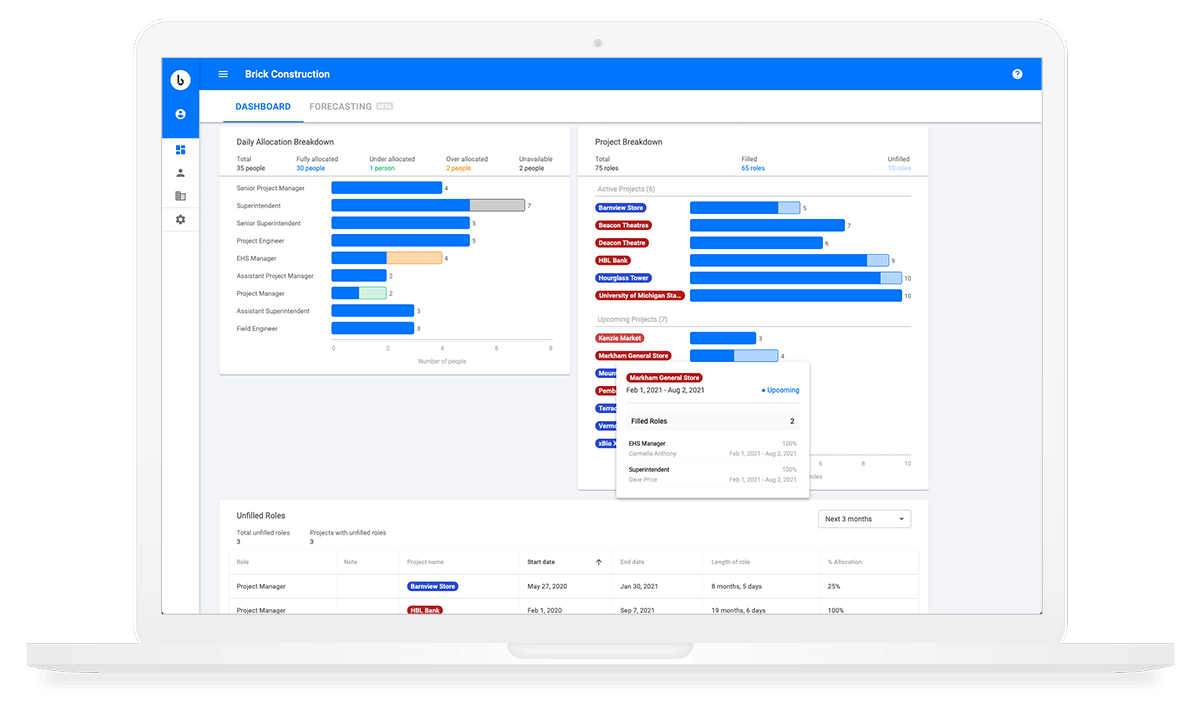 It provides a detailed analysis of ongoing multiple projects and information on all aspects of the project such as sued and forecasted budget, expenses, project’s stage, or deadlines.
