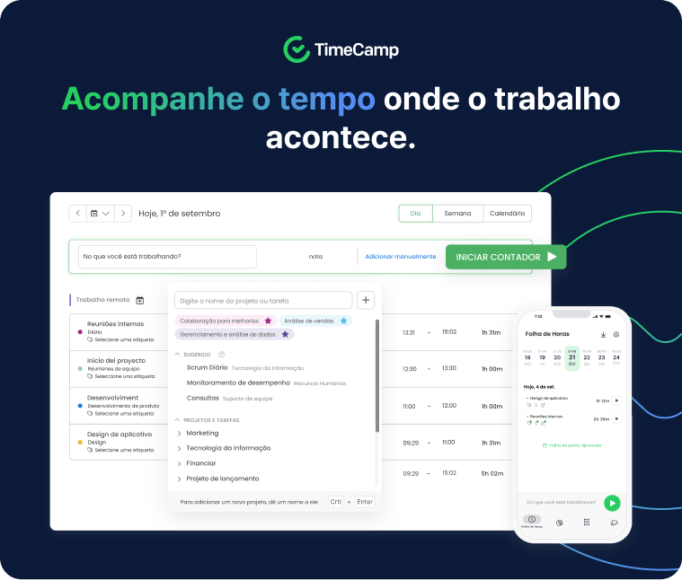 Use TimeCamp para sua empresa (www.timecamp.net.br) e baixe o APP em seu smartphone para aumentar ainda mais a experiência.