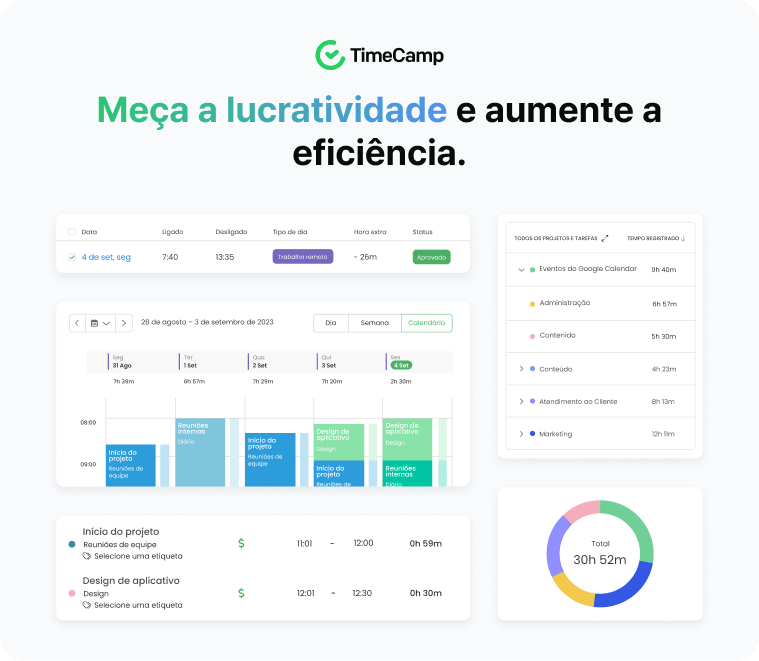 Timecamp consegue atuar nas duas formas acima. Mede tempo em projeto (de forma manual ou automática), mas também analisa as aplicações abertas nestes tempos. São poucas as soluções que fazem as duas coisas. O outro diferencial da Timecamp é que ela faz isto tudo com o mesmo valor de investimento das demais soluções de mercado que, em sua maioria, ou fazem o item 1 ou apenas o item 2.