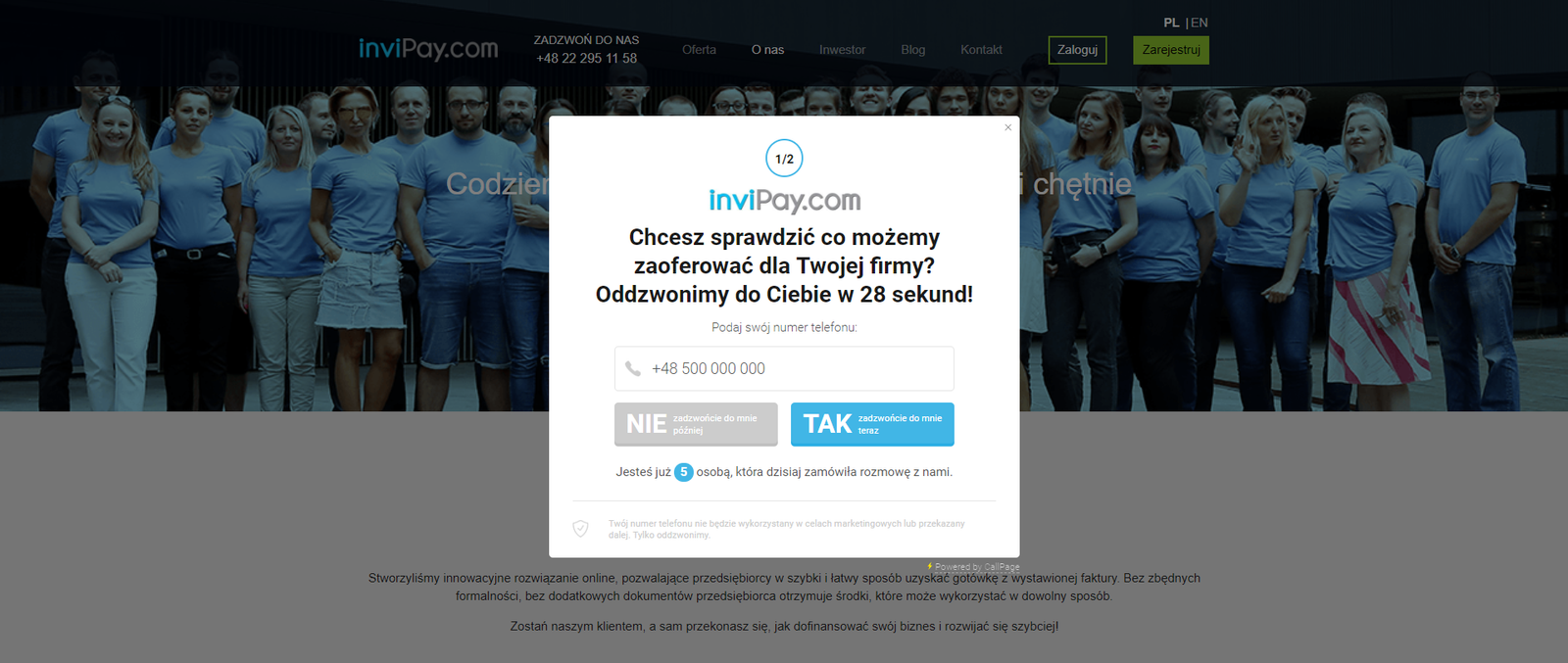 • strona pozyskuje kontakty nawet poza godzinami pracy firmy: użytkownik może zostawić numer telefonu i zamówić rozmowę np. na kolejny dzień roboczy. W ten sposób potencjalny klient nie czuje się bagatelizowany, a baza leadów powiększa się, nawet gdy w firmie nie ma żadnego pracownika.