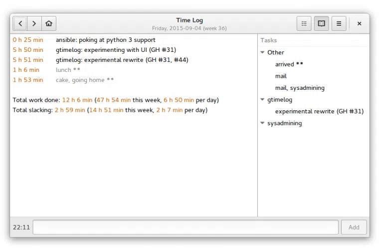 zrzut ekranu z aplikacji GTimeLog