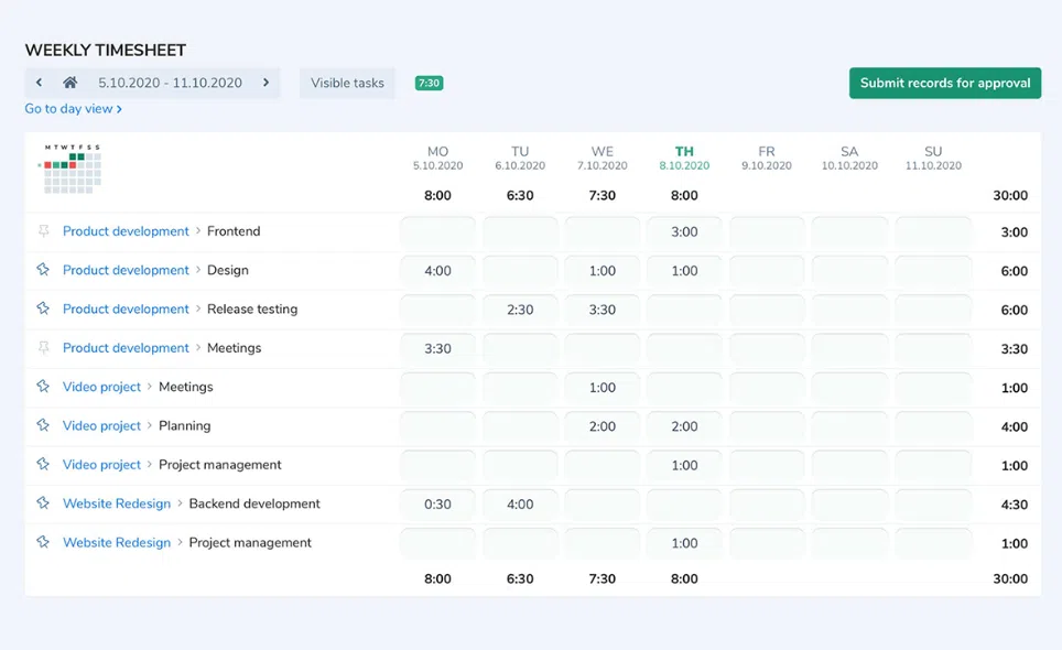 2. Oprogramowanie do śledzenia czasu z arkuszami czasu i zaawansowanymi funkcjami pozwalającymi monitorować postępy w pracy w czasie rzeczywistym (aplikacja webowa, desktopowa, mobilna),