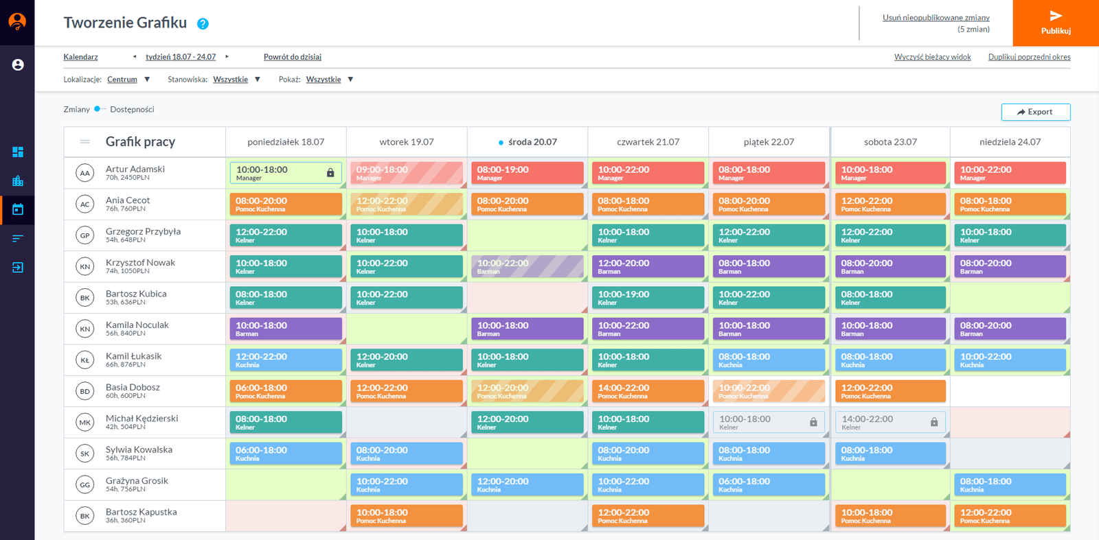 • tworzenie grafików pracy w przejrzystym kalendarzu,