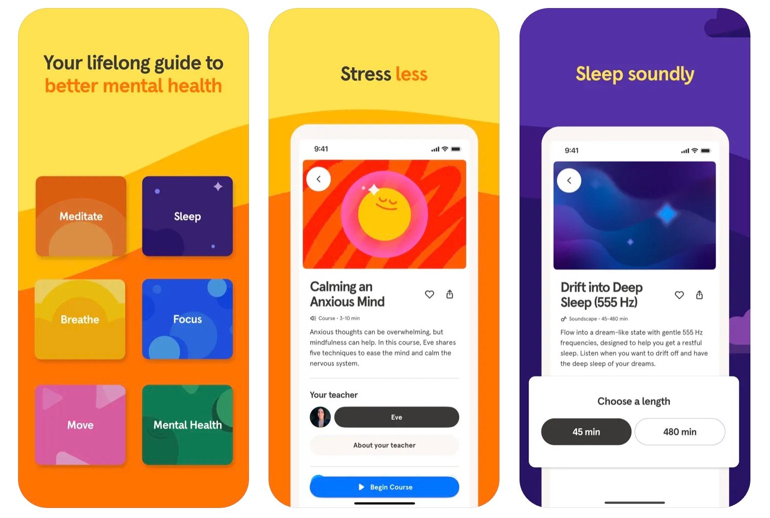kolaż przedstawiający funkcje aplikacji mobilnej headspace