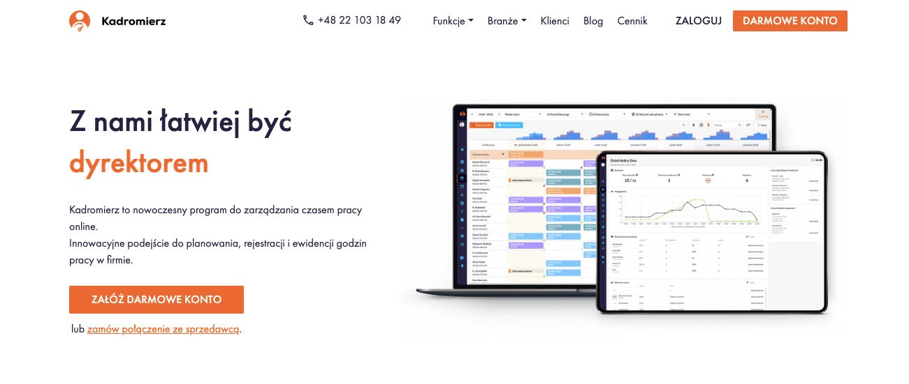 Kadromierz umożliwia monitoring godzin rozpoczęcia i zakończenia pracy za pośrednictwem aplikacji dla komputerów czy urządzeń mobilnych. Tworzy listy obecności, dzięki temu przełożeni mogą monitorować to, czy ich podwładni są w pracy, spóźnili się bądź pracują po godzinach.