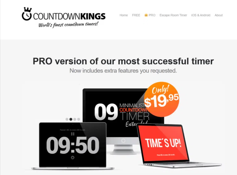 Countdown Kings to aplikacja skupiająca się na mierzeniu czasu podczas wystąpień publicznych, spotkań i innych wydarzeń (używana np. podczas TEDx). Liczby są duże i czytelne z daleka.