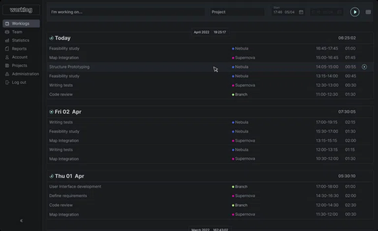 WorkLog to prosta aplikacja timerowa na Windows z podstawowymi funkcjami. Najlepiej sprawdzi się u programistów, projektantów, freelancerów, wykonawców, osób pracujących godzinowo oraz samozatrudnionych.