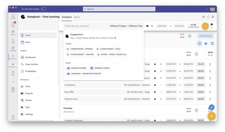 Timeghost to aplikacja do śledzenia czasu zaprojektowana specjalnie dla użytkowników Microsoft 365. Pomaga osobom indywidualnym i zespołom efektywnie zarządzać czasem i projektami.
