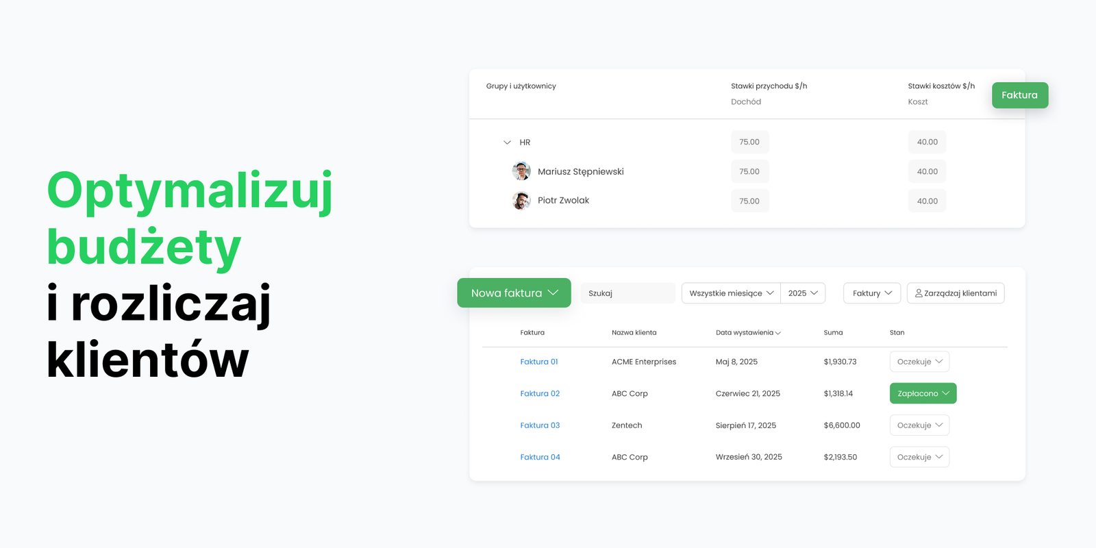TimeCamp zajmuje się śledzeniem czasu — Ty skup się na tym, by otrzymać zapłatę.