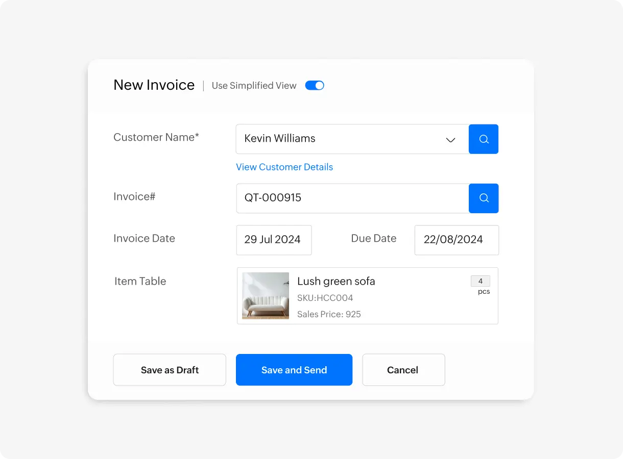 Zoho Invoice Fakturowanie z funkcjami premium 4.7/5 W pełni darmowe z nieograniczoną liczbą faktur