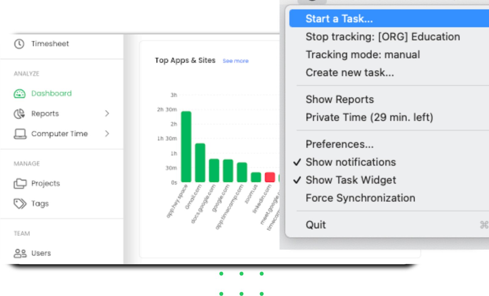 Why waste time on manual timesheet filling when TimeCamp seamlessly assigns time entries to the appropriate projects and tasks? Download a Mac, Windows, or Linux desktop app, enable Automatic time tracking features, and enjoy tracking work hours without remembering about switching between projects or tasks when you start working on something new.